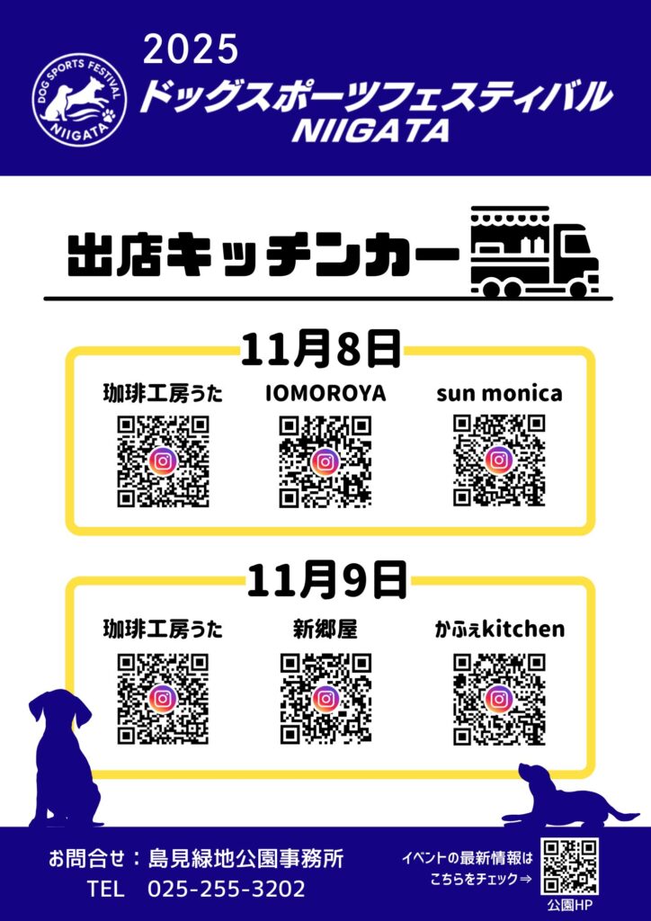 11月8日(土)・9日(日)に開催されます「2025 ドックスポーツフェスティバル NIIGATA」にて出店いたしますキッチンカーは下記の通りとなります。